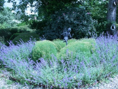 One acre secret garden divided into rooms. Gradually developed over the last 30years. Many places to sit and enjoy the scent of honeysuckle, philadelphus and over 50 varieties of roses. Wildflower meadow, gazebo and summerhouse. Formal lily pond and small wildlife pond. Some quirky features. You may even see a fairy.